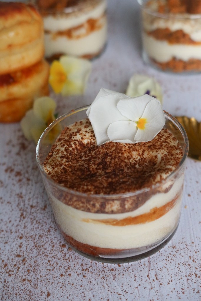 - Coupez vos petits muffins sans le sens de la longueur, trempez dans le café puis déposez dans le ramequin puis une couche de crème, puis une couche de biscuit café, une de crème jusqu’à épuisement de la crème.