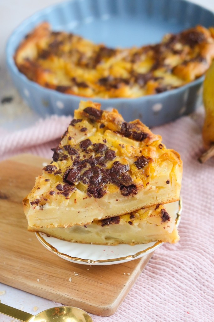 Une de mes petite recette chouchou et toute légère, mon clafoutis à la poire et aux pépites de chocolat
