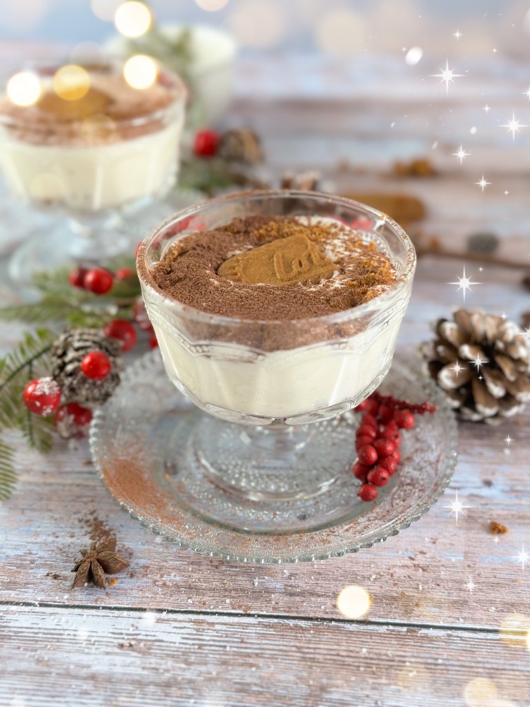 - Émiettez des spéculos, déposez dans une verrine puis ajoutez la crème, faites des couches en mettant plus ou moins de speculos